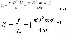 管道內體積流量qv為: