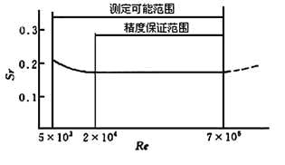 范圍度寬是渦街流量計的特點,但重要的一點是量程下限的流量數值。一般液體平均流速下限為0.5m/s,氣體為4~5m/s。渦街流量計的正常流量在正常測量范圍的1/2~2/3處。