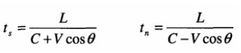 在管道中斜裝一對超聲波傳感器兩個傳感器之間的距離L為超聲波傳播聲程。那么,超標在兩各傳感器之間的順流和逆流傳播時間分別為: