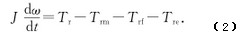 式(2)中:J—葉輪的轉動慣量;t—時間;ω—葉輪的轉速;Tr—推動力矩;Trm—機械摩擦阻力矩;Trf—流動阻力矩;Tre—電磁阻力矩。