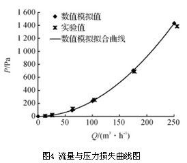 根據圖4中壓力損失隨流量的變化趨勢,可以將流量與壓力損失之間的關系擬合曲線為二次多項式,其表達式為