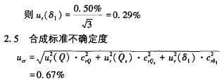 ?? 根據多次試驗,內徑測量誤差為±0. 5mm時引起流量的影響量得到一個經驗值,約為0.50%,按均勻分布考慮,則測量管道內徑帶來的不確定度為: