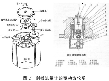 (4)出軸密封部分:出軸密封部分是連接流量計表頭和流量計殼體的部分,它一般有三種結構:磁性連軸器、機械密封式的連接、“O”型密封圈式的連接。這里我們主要分析以磁性聯軸器為連接的結構易出現的故障。磁性聯軸器脫磁,包括打滑,溫度升高,都非常容易引起脫磁。無法轉動,就帶動不了精度修正器轉動,那么依次向上,也就不發生轉動。出軸密封的聯軸器脫磁,不能發生轉動,帶動上面的精度修正器里面的齒輪也不發生轉動,所以字輪也不再轉動(圖2)。