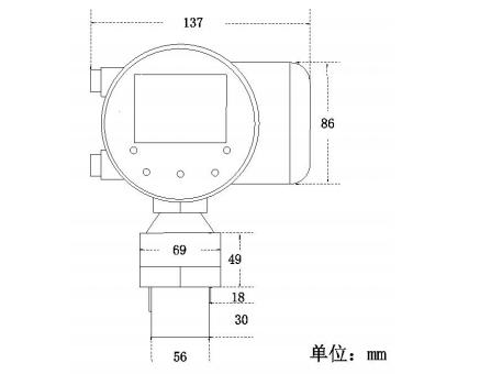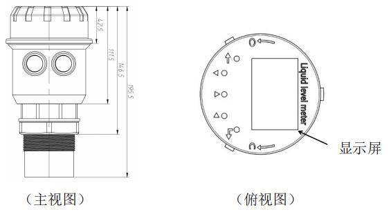 分體式由顯示儀表(二次儀表)和超聲波傳感器(一次表)兩部分組成,結構如下(外觀尺寸見6.1.1):
