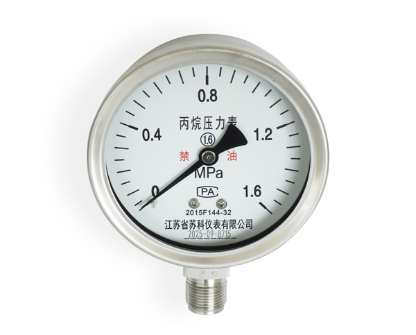 丙烷壓力表適用于測量密閉容器或者管道內(nèi)丙烷氣體介質(zhì)的壓力的場合,丙烷壓力表由導(dǎo)壓系統(tǒng)、齒輪傳動機(jī)構(gòu)、示數(shù)裝置、和外殼所組成。外殼為氣密性結(jié)構(gòu),能有效的保護(hù)內(nèi)部機(jī)件免受環(huán)境影響。